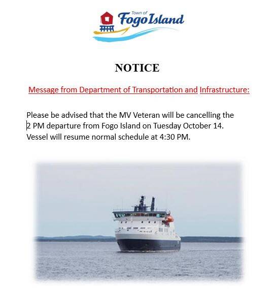 Notice - Ferry Schedule Oct 14th
