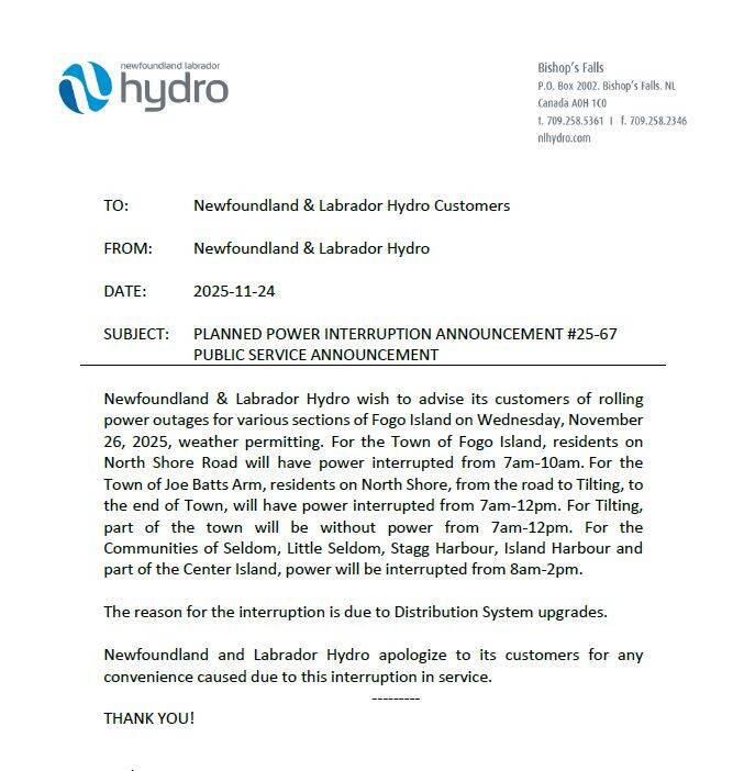 Ferry Notice - Nov 25th and Nov 27th, 2025